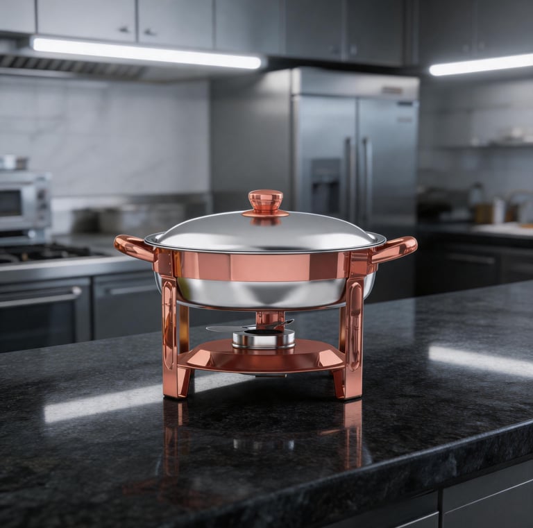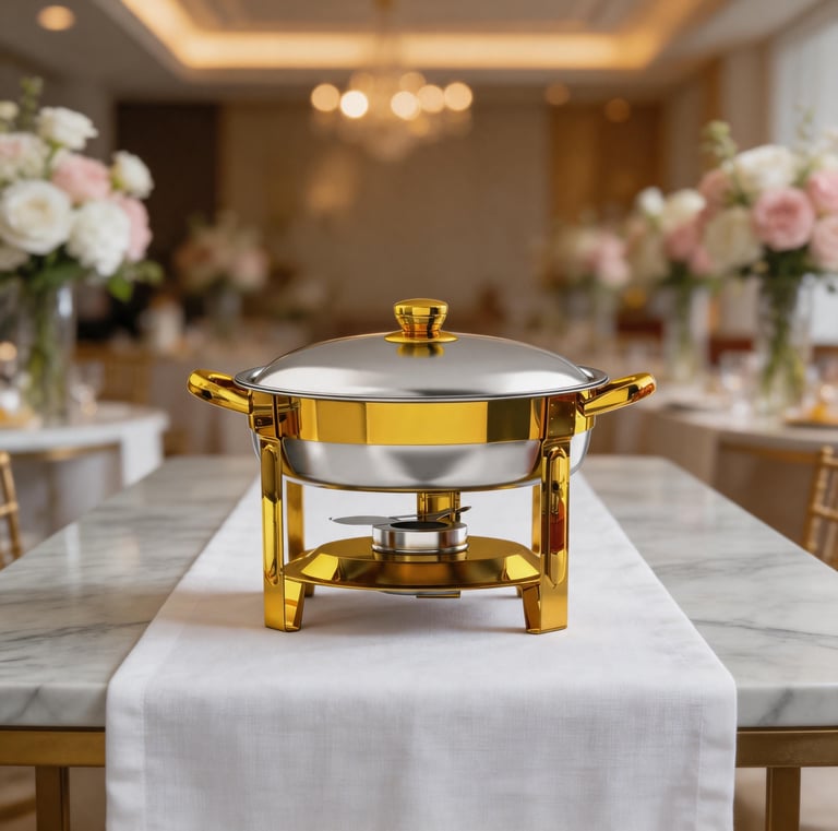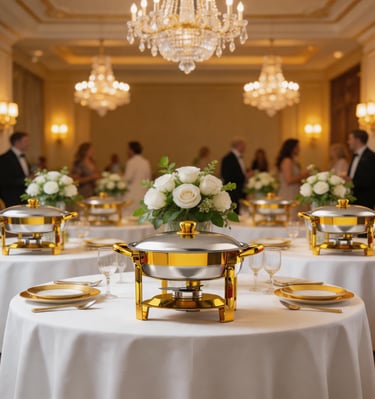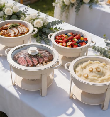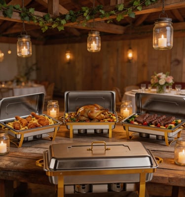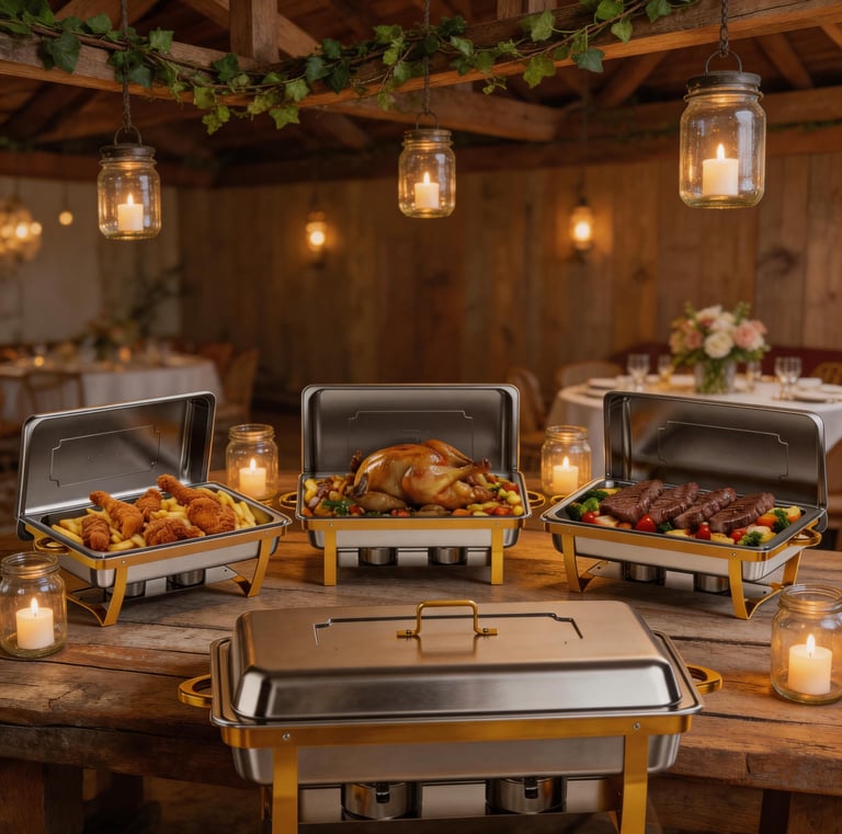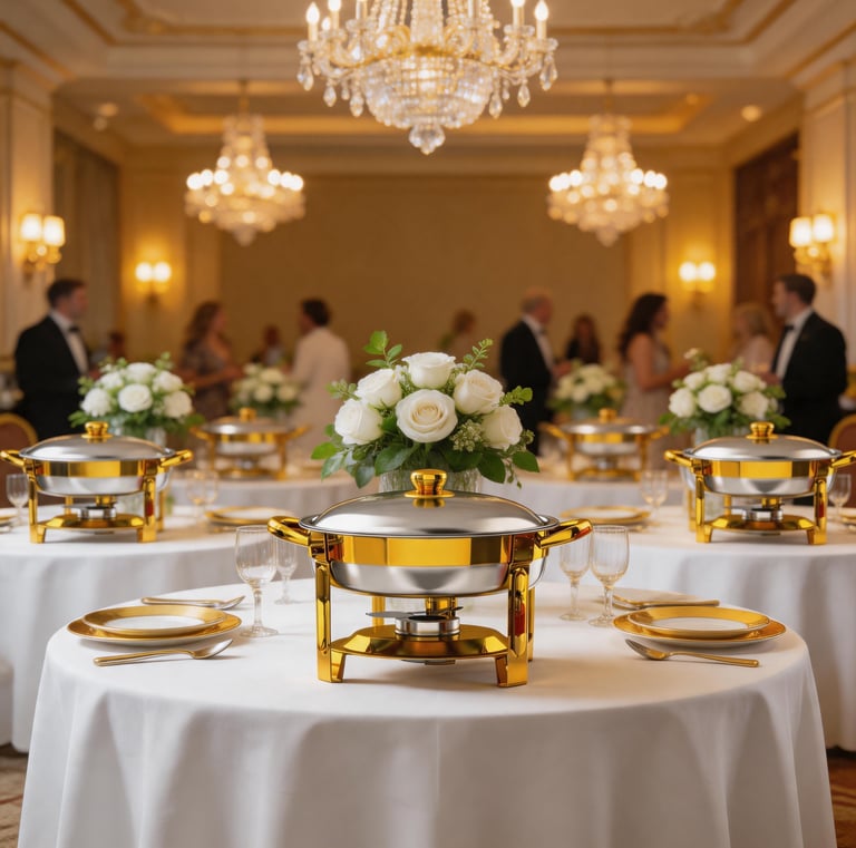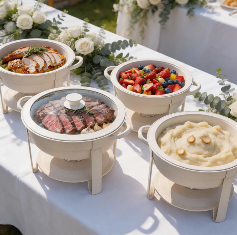 Elegant buffet setups showcasing trivico's premium chafing dishes.